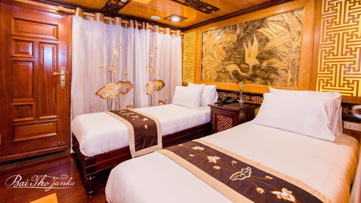 Start with Tai Chi at sunrise, followed by a light breakfast. Explore Sung Sot Cave, known for its breathtaking formations. Enjoy a farewell brunch while cruising back, then disembark at Halong International Harbor at 11:00 AM.