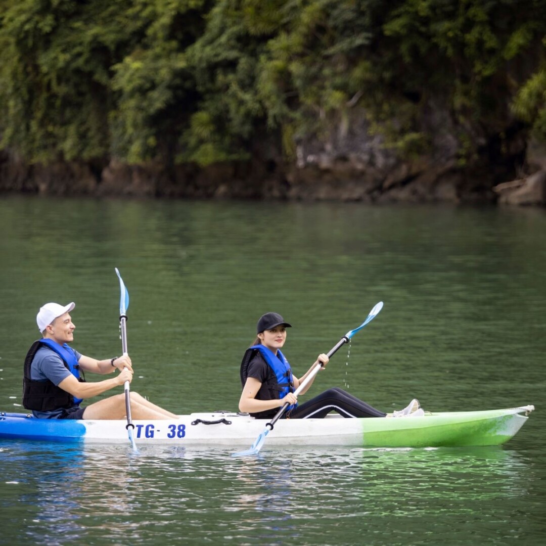 Tucked away in a tranquil corner of Halong Bay, Tung Sau Pearl Farm offers more than just a glimpse into the art of pearl cultivation. It’s also a haven for kayaking lovers. Glide your kayak through glassy emerald waters, weaving between limestone karsts and floating oyster nets. The calm bay here is perfect for a peaceful paddle, with fewer boats and an authentic local atmosphere. As you drift past the floating farmhouses and watch pearl workers at their craft, you’ll feel a rare connection to both nature and culture. It’s a serene and soul-soothing experience, ideal for travelers who want to slow down and soak up Halong Bay’s quieter beauty.