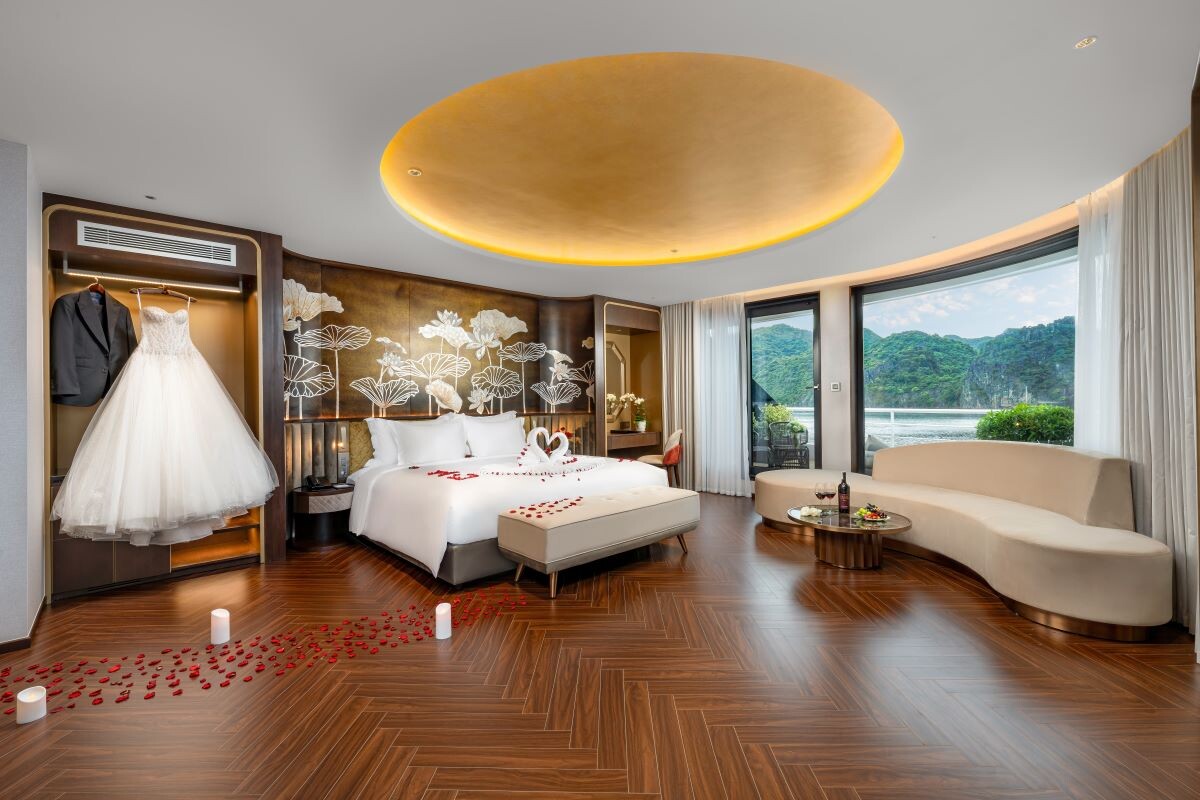 Lavish interiors of the ultra-luxury president suite cabin, perfect for relaxation between Halong Bay adventures