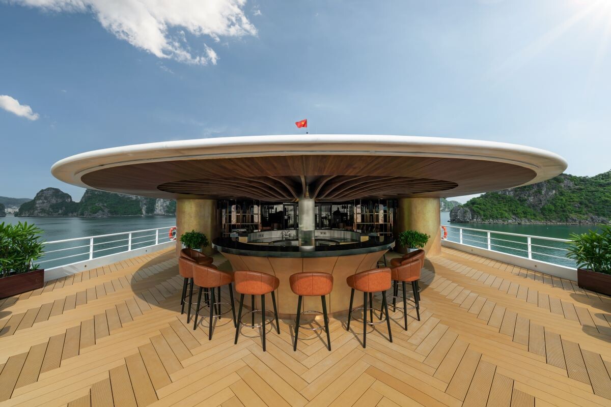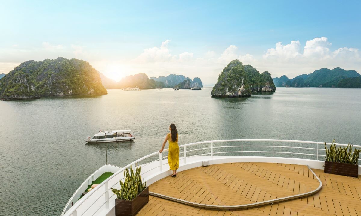 Golden hour on the sundeck – a signature moment of the Halong Bay ultra luxury experience
